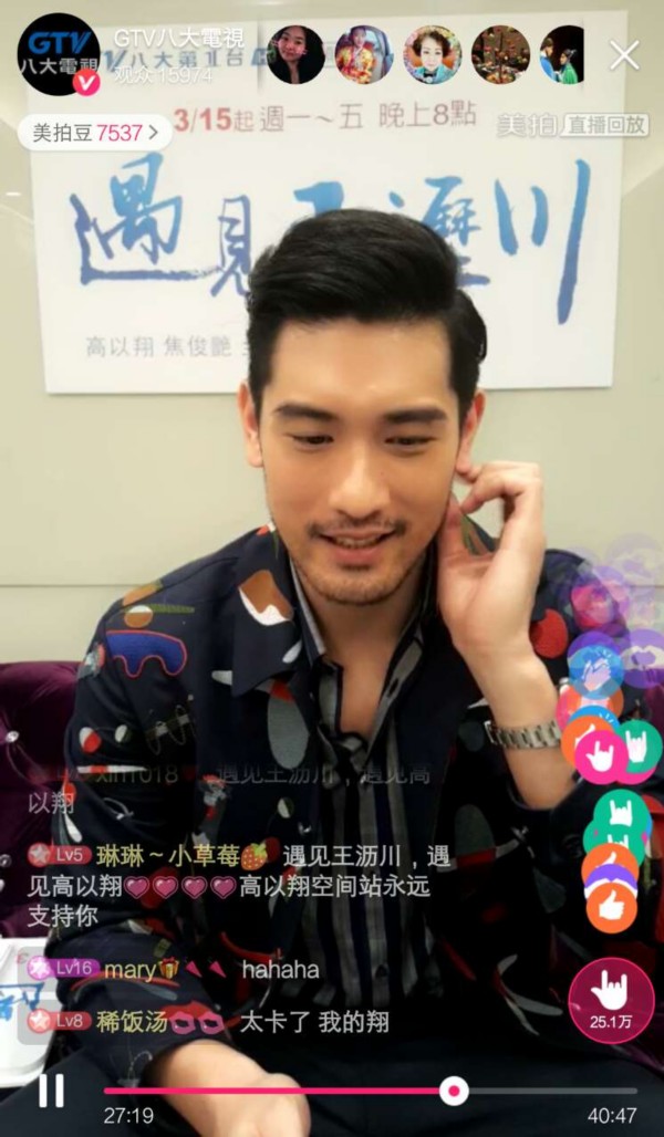 3月6日晚,高以翔帅气现身美拍直播间,与数万线上网友一起《遇见王沥川》。