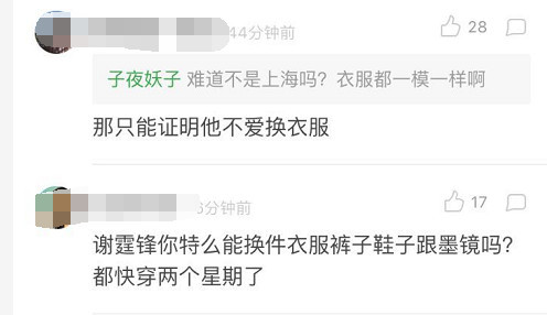 不过值得一提的是,从北京到上海,谢霆锋这一身衣服完全没变,粉丝纷纷大呼:霆锋快换衣服,都穿快两星期啦!