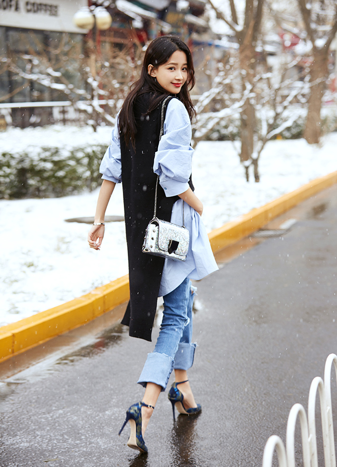 时刻新闻 —分享— 孙怡 近日,孙怡一组街拍写真曝光。镜头下,孙怡身着浅蓝色衬衫式长裙,外搭黑色针织衫,下穿破洞翻边牛仔裤,脚踩细跟高跟鞋,十分简约清爽。酷而不失甜美,简而不失大气,尽显纯净气质。 [NextPage] [NextPage] [NextPage]
