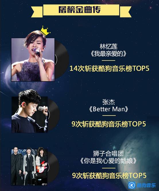 其中,《我最亲爱的》14次斩获酷狗音乐榜前五。林忆莲仅用一首歌就强势称霸音乐榜单长达半个月不倒。