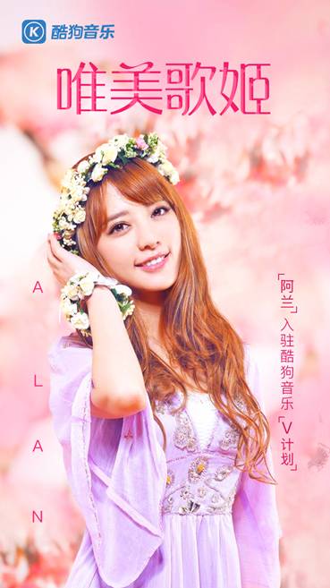 即使是唱歌,画风同样唯美,因为阿兰拥有独一无二的空灵之嗓。由她演唱的《花千骨》主题曲《千古》上线酷狗后,大受网友好评,单曲循环的人数不胜数!而这一次,她携歌曲《兰之乐光》,入驻了酷狗音乐V计划。