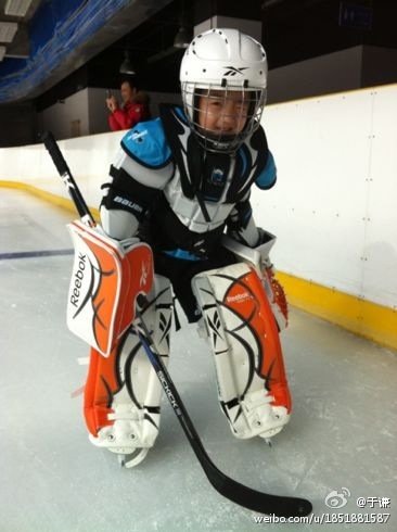 于谦的儿子于思扬也在打冰球,恐怕知道的人不多。谦哥在微博曾晒出儿子帅气冰球照,并配文“冰球队的新队员,二十斤重的新装备,大黃蜂——于思扬“。