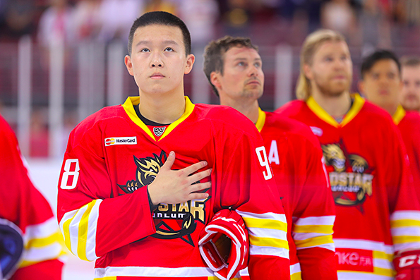 然后就是英达的儿子英如镝,应该说是目前最出名、成绩最好的冰球“星二代”了。去年,英如镝正式成为了自1953年以来第一位正式签约征战世界顶级冰球联赛(KHL)的中国球员。4岁就开始打冰球的英如镝也曾为了冰球而中断学业,个中辛苦恐怕只有打冰球的人自己才知道了。