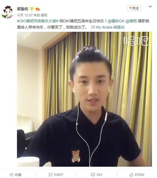 梁振伦以音乐剧演员身份踏足演艺圈,在经历多年的积累与沉淀后,开始涉及电视剧拍摄,相继拍摄《我的小姨》、《凡人的品格式》等电视剧作品,除了获得不少人气外,演技也得了磨炼,可谓是实力圈粉。才艺和爱好一样很多的梁振伦除了喜爱表演外,对音乐也有着自己独特的见解。热衷于在微博上为大家一展歌喉的他,近日在其微博用唱吧分享一首单曲《My Anata》并在MV中表示,这是预祝唱吧五周年生日快乐的礼物!