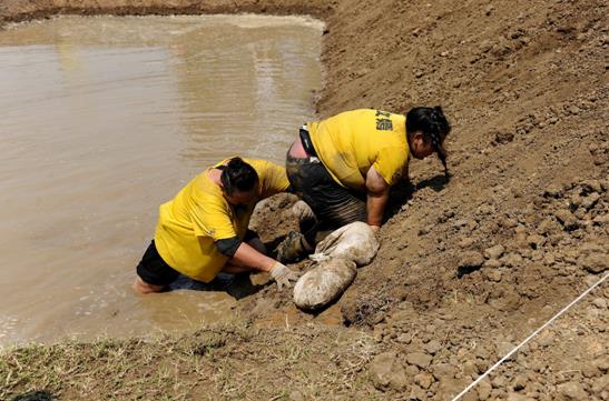 更让人没有想到的是,一向“恐高”、“恐跳跃”的苏文嫣不仅克服了心魔,年龄最小的她还化身大力士,在大挑战中一次性扛起两袋沙袋,让比她身体更轻盈的两名女对手目瞪口呆。“铁血汉子”石贵滨更是力扛百斤沙袋,过独木桥、翻网绳、爬水坑,战斗力爆表。