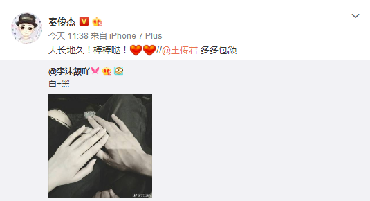 昨日,王传君在微博公布恋情,并配文:“请多多包颔(涵)”,收获了圈内众多好友的祝福。除了《爱情公寓》主演之外,秦俊杰也转发微博祝福道“天长地久,棒棒哒!”。据悉,秦俊杰与王传君曾共同拍摄电视剧《网球王子》,虽然时隔近十年,但二人友情依旧。秦俊杰还在微博喊话“等我杀青!找你尬酒”,王传君回复道“别醉啊”,网友表示“龙马和钱真智,满满的回忆杀”。