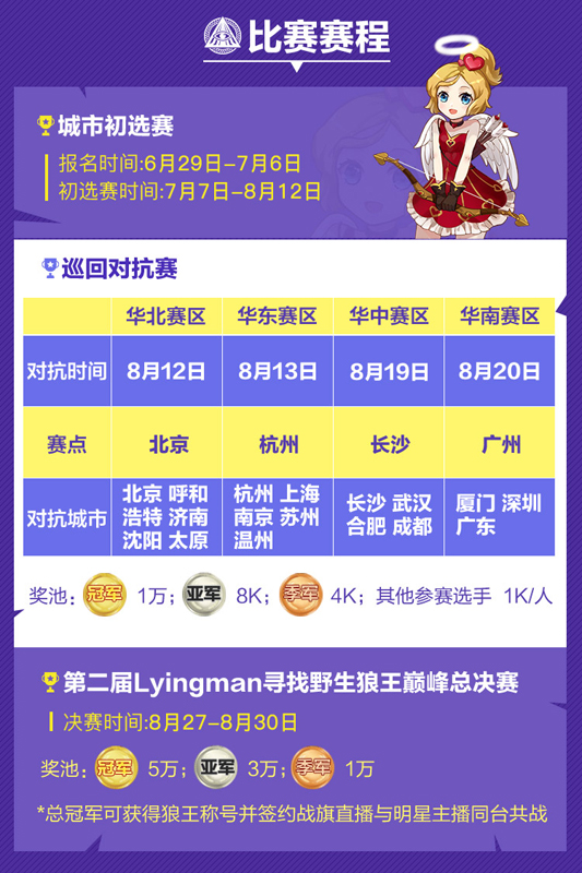 2017年战旗直播Lyingman城市狼王争霸赛正式启动,本届比赛将全面覆盖华北、华东、华中、华南四大赛区,共计十七座城市,百家桌游吧网布全国,不论你身在何处,只要你拥有一颗强悍的狼王心脏,那么,欢迎你来到LYINGMAN的舞台!高额奖池等你来战!