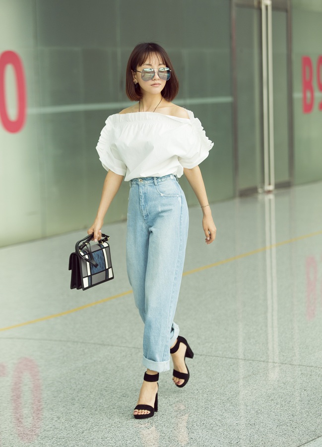 时刻新闻 —分享— 娇俏可人!杨蓉一字肩配牛仔裤休闲时髦 近日,杨蓉身着白色一字肩上衣,搭配浅蓝色宽松牛仔裤现身北京首都机场。一字肩设计露出性感的锁骨,短发突显颈部优雅线条,娇俏可人,休闲时髦的同时又不失小女人的性感妩媚。