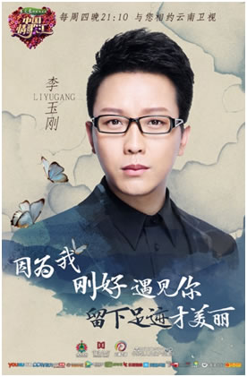 自云南白药养元青《中国情歌汇》开设东北情专场、西游记专场、模仿秀专场以来,就在节目形式不断创新的道路上愈发不可收拾,在本周四晚21:10即将在云南卫视播出的新一期节目中,又为大家带来李玉刚专场,节目荣幸的邀请到李玉刚老师抵达现场,与众多歌者一同唱响经典,和云南当地的朋友们一起感受李玉刚老师歌曲中的情感魅力。