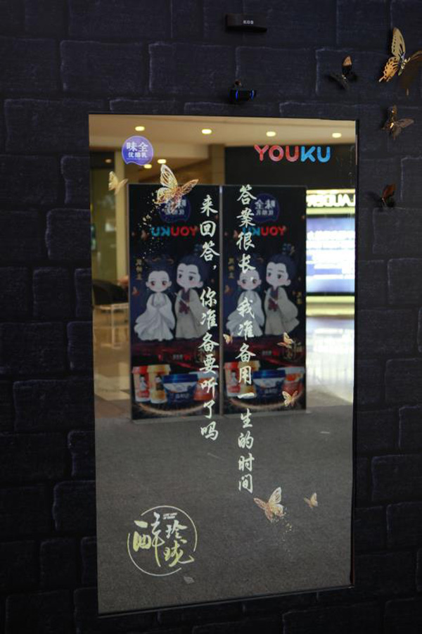 在这个有趣的“玲珑城”中,用户可通过味全玲珑杯启动巫术进行穿越,从现代回到醉玲珑的世界,玲珑杯摇身一变成为了连接现在和过去的媒介体,迷宫本身的未知让人忍不住前进探索……整个迷宫由十个六边形组成,每个形状的六面都是镜子互相反射,每个六边形中都有两扇门供一进一出。而在迷宫的出口,还设置了一个互动区域,整个区域由剧中场景包围,走到镜子面前,就会出现一句仿佛读心术一样的文案:“答案很长,我愿用一生的时间来回答,你准备好了嘛?”、“心爱男神,信息秒回”等,每次出现的文案都不相同,离开镜子面前就会消失。网友大呼:简直太神奇啦!