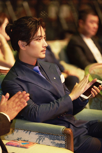 现场,陈晓一身简约儒雅的深蓝色西装低调亮相,微卷的黑发半扎,浓郁的文艺气息扑面而来。他静静地站在领奖台上,沉稳淡定地发表了获奖感言,他对组委会颁给他这个奖项谦虚地表达了感谢,也希望大家能继续多多支持他现在正在播出的作品《那年花开月正圆》以及他的新电影《如影随心》。