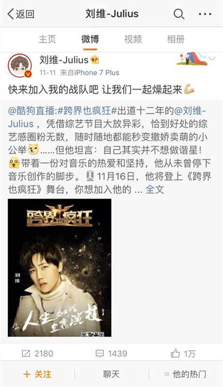 而最近小编从“综艺小王子”刘维的微博看到,他即将参加一个全国最real的综艺节目,还让粉丝加入他的战队。难道,和爱豆同台的梦终于能实现了?!