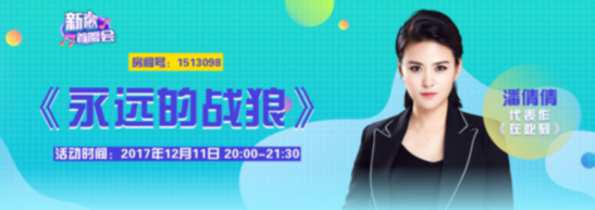 潘倩倩,一个名字听起来温婉如水的姑娘,唱起歌来却刚中带柔,有着翻江倒海般的力量,那如大地般稳重厚实的嗓音,又怎能让人想到竟是从一位女歌手的口中发出。引用音乐界媒体对她的评价:“潘倩倩有着一副特别的嗓子,唱起歌来犹如男声,而这独特的嗓音给她带来了极大的辨识度”。就在12月11日的晚上,有着辨识度极高嗓音的潘倩倩携新歌《永远的战狼》来到了酷狗直播的个人首唱会,成千上万的观众粉丝们都早已搬好小板凳备好了瓜子守候在屏幕前等候围观了!