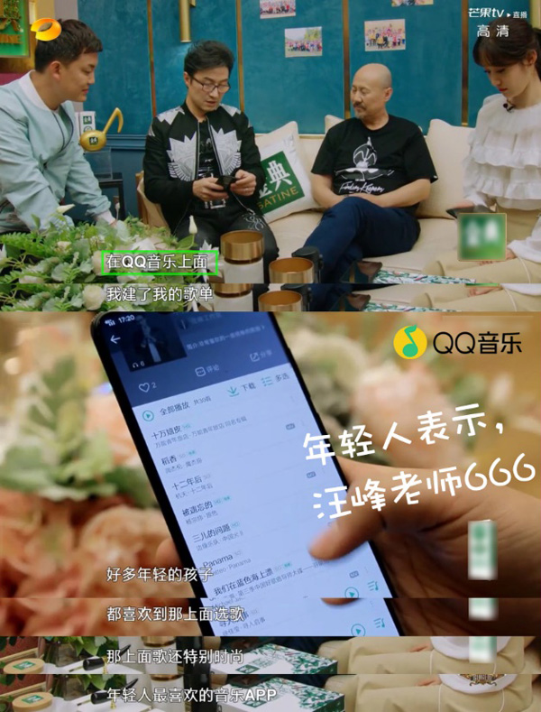 有意思的是,节目录制期间,腾格尔串门推开汪峰的房门,和汪峰表示自己:已“歌荒”,汪峰说“在QQ音乐上面,我建了我的歌单。”,音乐合伙人李锐接着说:“现在好多年轻的孩子,都喜欢到那上面选歌。”看来QQ音乐是节目大咖歌手们的选曲必备神器。