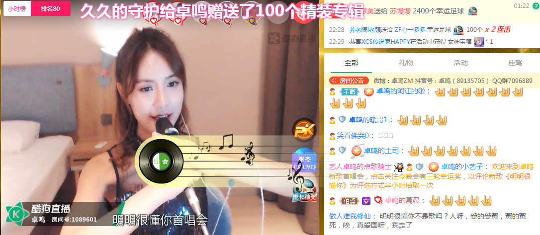 当晚,卓鸣更开放粉丝福利,在新歌《明明很懂你》评论区抽取走心评论者成为幸运观众,送上自己亲手挑选的精美礼物,一共有三位乐迷被抽中了呢~如果你也想成为幸运观众的一份子,记得到酷狗音乐《明明很懂你》留言一波走心评论,再关注上卓鸣的酷狗直播间,下次有任何新动态就会准时收到啦!