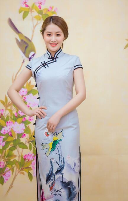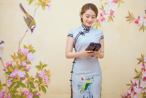 写真中,李金子身着旗袍,整体造型简洁复古,端庄大方,让人印象深刻,妆容清澈,甜美笑容令人心旷神怡。