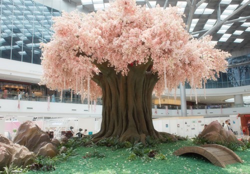 《狐妖小红娘》动画自2015年开启连载,目前全网播放量已突破40亿,天然具备高热度的关注。每个篇章还未上线时,便能引发粉丝热烈讨论,成为当季最受期待的动画作品之一。故事中有一棵相思巨树,相爱的人与妖只要在相思树下许下心愿,就能获得来生再见的机会。为了还原剧情中的设定、增强粉丝体验感,合生汇五层“拔地而起”一棵相思树,粉色的花瓣漫天飘舞,勾勒出如梦似幻的浪漫场景。相思树旁,周边小屋林立,像是错落有致的涂山小镇,让行人仿佛穿越到动画世界中。无论是粉丝或是行人,都会驻足停下拍照,这种从“IP”中提取元素的营销,不仅能提高粉丝的参与互动性,也能增加行人对品牌的印象。