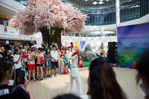 我们了解到,为了让增强互动性,现场专程设置了“转世续缘办事处”等趣味玩法,帮助路人情侣“爱情续缘”,仿佛置身于动画。此外,主办方还特意邀请了歌曲《梦回环》的原唱歌手呦猫来现场献唱,战歌一起,现场气氛达到高潮。