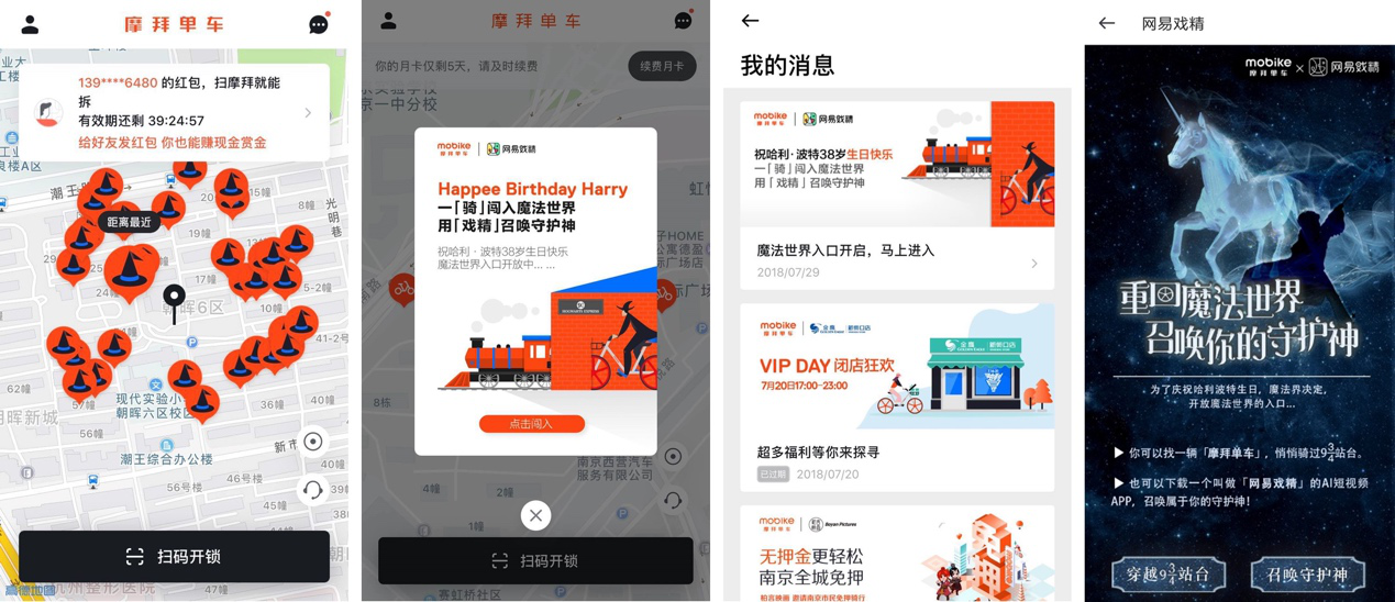 此外,《网易戏精》与摩拜单车也进行了跨界合作。活动期间,逾2亿摩拜用户在享受无门槛免押金骑行服务的同时,也可以在摩拜APP中发现《网易戏精》“呼唤守护神”的活动信息。