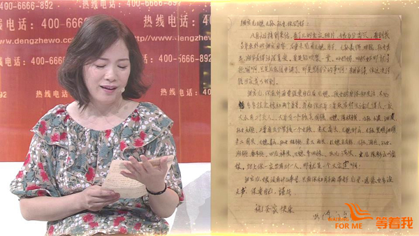 父亲去世后,陈湘华多年来一直在苦苦寻找那20多封“遗失”的家书,终于在家中一个角落的抽屉里找到了当年父亲珍藏的一叠书信。里面还有几封父亲的亲笔信,他在回信中写道:“所谓家书值千金,其实这几十年来天天盼望的,又何止千金,万金……”陈湘华想象着父亲写下这些信的时候,字里行间对家乡、对亲人的思念之情,就好像她现在思念父亲一样。她按照信封上的地址,先后两次回到湖南寻找,却发现老家的行政区划发生了变更。