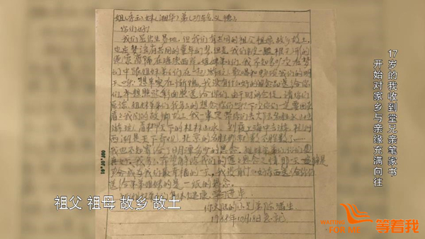 在那个通信不发达的年代,信件一来一回,往往需要七八个月,一年也只能收到一两封。相隔1600公里的一家人,就这样靠书信维持着联系。父亲将所有家书都保存在一个只有他自己知道的地方。1989年,17岁的陈湘华收到了一封堂兄陈满生寄来的书信,信中写道:“我们虽然出生异地,但是我们有共同的祖父、祖母、故乡、故土。”以前陈湘华觉得只存在于父辈之间的血脉亲情,延续到了下一代:“原来在大陆,还有跟我们同辈的兄弟姐妹!”