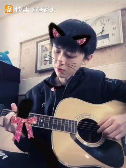 张逸杰在快手上直播弹吉他