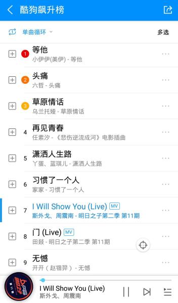 而不舍的酷狗粉丝们,更是疯狂循环斯外戈上期的《I Will Show You》,让这首单曲迅速冲上了酷狗飙升榜的前10。唱跳俱佳的他,虽然没有受过科班训练,但在春春的耐心指导和自己不服输的拼劲儿,也终于获得了歌迷的认可。祝愿斯外戈越走越远,越走越好!