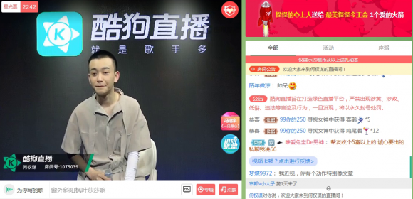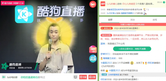 当晚陆续有观众通过酷狗音乐的提示进入直播间,自从酷狗音乐和酷狗直播打通链接后,每当歌手开启直播,粉丝就能通过提示轻易进入直播间和爱豆进行互动,歌手也通过这种宣传方式,人气大涨!难怪越来越多歌手选择在酷狗开播!