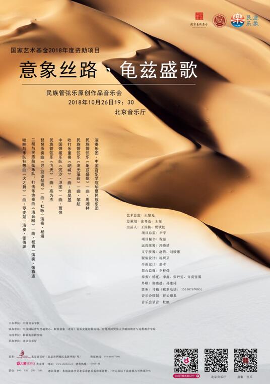 也正基于此,“意象丝路·龟兹盛歌”民族管弦乐原创作品音乐会期望以图像、文字、音乐三维一体的方式立体地诠释中国传统文化与民乐,帮助听者更好地解读传统文化与民乐,携手同仁们与民乐爱好者们传我国粹、扬我国音。