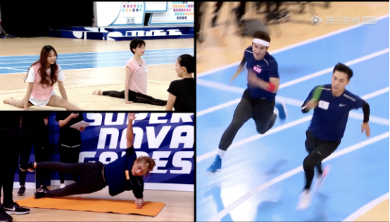 《超新星全运会》中各位“超新星”走出熟悉的演艺圈,一头扎进体育领域接受全新的挑战,而赛前的体测环节就是第一道考验。最基本的身高体重测量,对于艺人来说犹如洪水猛兽,看似简单的协调性测试也难倒众人,手脚画圈的动作被陆定昊演绎得魔性十足。进入到分组集训阶段时,呆萌村花杨超越在《超新星全运会》中爆发出了隐藏的体育实力,一个“锦鲤跃龙门”式的跳高赢得现场一片啧啧夸赞。