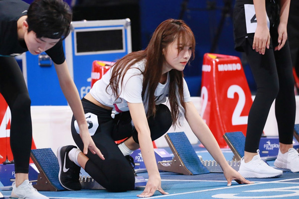 在节目中蒋申参加女子50米短跑预赛A组比赛,位于第五赛道的蒋申难掩激动紧张,尽管如此她仍细致认真地调整助跑器、试跑就是为了全力以赴赢得比赛。镜头前的蒋申自信活泼地向现场观众打招呼,柔和的笑容犹如赛前阳光,照亮了整个赛道。比赛一枪打响,前半程选手们速度相当,不分仲伯,只见此时蒋申逐一超越身边对手,灵活纤细的双腿犹如小马达飞速转动,赛段后半程蒋申矫健的身姿已成为全场焦点,遥遥领先的蒋申却全然未减速,不到最后一刻绝不松懈,直到奔向胜利的终点。最终蒋申以8秒42的好成绩轻松夺得A组第一名。