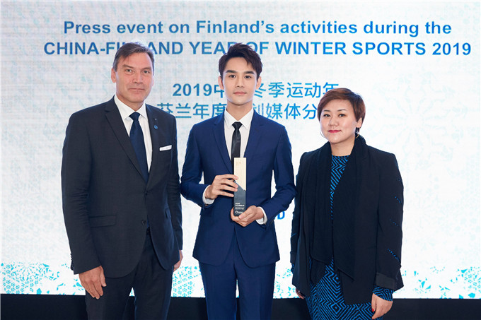 昨日,恰逢芬兰总统尼尼斯托访华和2019中芬冬季运动年正式开幕之际,2019中芬冬季运动年芬兰年度计划媒体分享会在京举办。芬兰国家旅游局局长帕沃·维尔库宁先生亲自将刻有"芬兰冰雪旅游大使"称号的纪念奖杯授予青年演员王凯,正式官宣王凯成为“芬兰冰雪旅游大使”。
