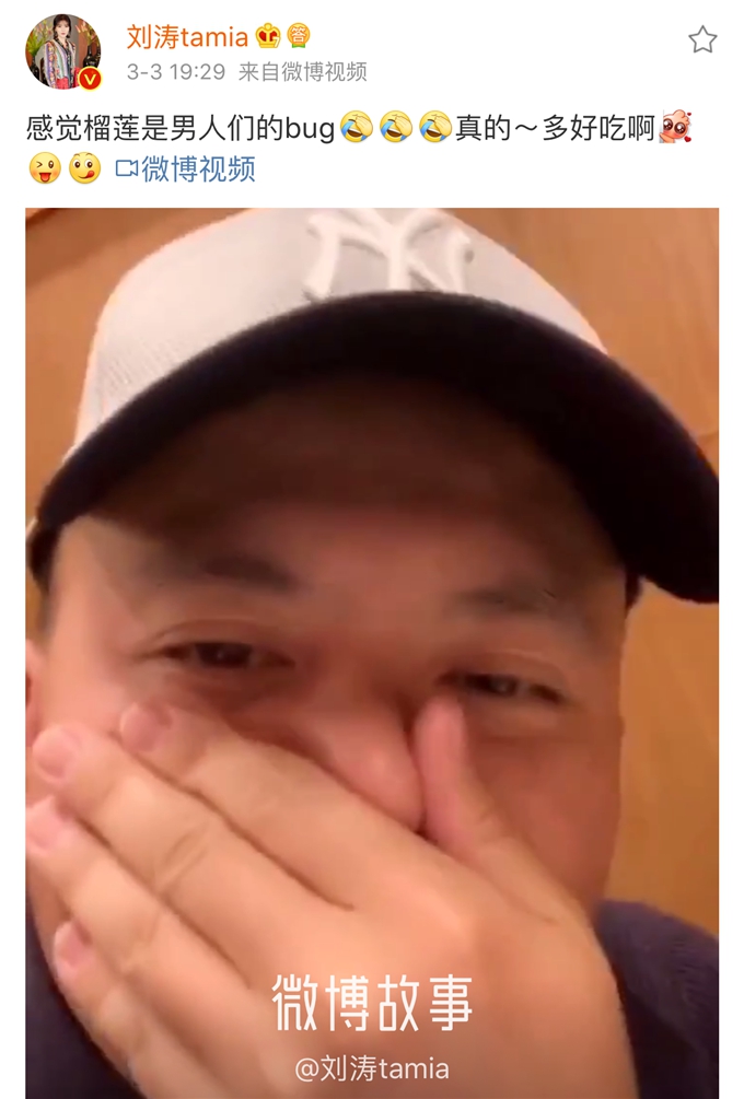近日,刘涛发布一条视频,视频中王珂因受不了榴莲的的味道全程捏鼻子,而另一边刘涛正在享受榴莲,俩人形成鲜明对比,非常逗趣。刘涛还发文表示:“感觉榴莲是男人们的bug,真的,多好吃啊!”视频发出,有网友留言:最近看涛姐发的视频,感觉都是在骗我谈恋爱!