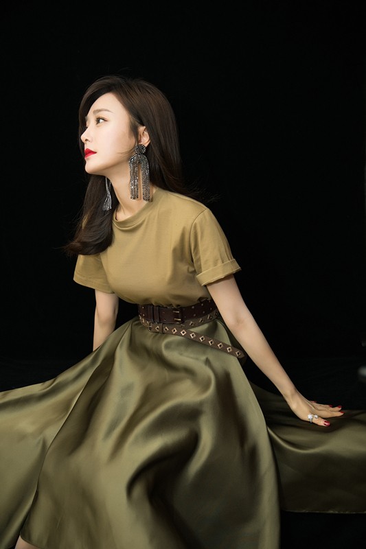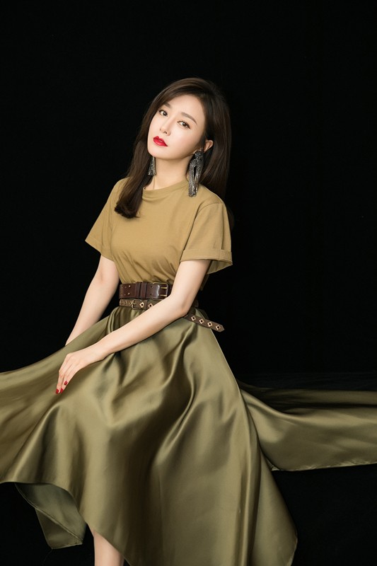 近日,秦岚亮相天猫金妆奖。一身军绿色裙装的她,走起路来精神抖擞。不规则散开的裙摆,显得纤细的腰肢更加盈盈一握。斜分的发型,显眼的超大镶钻耳饰,为低调内敛的文艺范儿增添了一丝恣意张扬,随心所欲的艺术情怀。