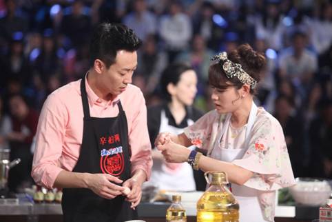 首轮“帮帮煮”比拼环节,三强选手采用“火炬选人”的方式抽选两位帮厨。雪姨王琳第一个点名不要白凯南,一句“颜值和手艺双低”竟让老白无言以对,果然在胜利面前,昔日的“掰开都难”组合也是可以突生情变的。最终王琳抽到“幸运螺丝钉”刘芸和“安静美汉子”朱丹组成“美少女”队,共同完成难度颇高的“海鲜黄金虾”。这道海鲜创意料理的亮点在于不同食材融合处理后层次丰富的口感和诱人鲜香,而亮点同时也是最大的难点,从处理大明虾到制作鱿鱼内馅、流沙黄金蛋、蜂巢芋角咸蛋黄……每一层每一步都是巨大的考验,尤其是在最终炸制大虾时对油温的掌控极其考验掌勺者的功力。身经百战的雪姨王琳不畏挑战,让刘芸、朱丹都在合理分工下通力合作,切配、炒料有条不紊,但是时间的紧迫和对手的强大让她们几乎没有空闲说话,朱丹和王琳更在最终的油炸环节受到油花的“爆破”洗礼,尖叫一片恍若当年炒栗子大战时的惊恐,“负伤惨重”的美少女队最终能否完美呈现这道让人又爱又恨的海鲜黄金虾呢?“劳模”王琳双手烫出泡奉上的作品又能获得“大厨军团”30分之几的青睐呢?